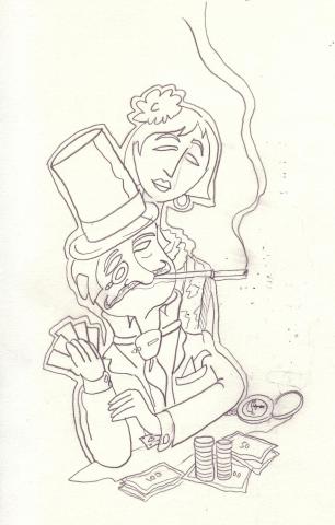 Etude à la mine de plomb sur papier, pour " La partie de cartes, 5"