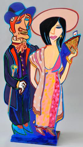"Couple de tricheurs "recto. Acrylique sur bois découpé.