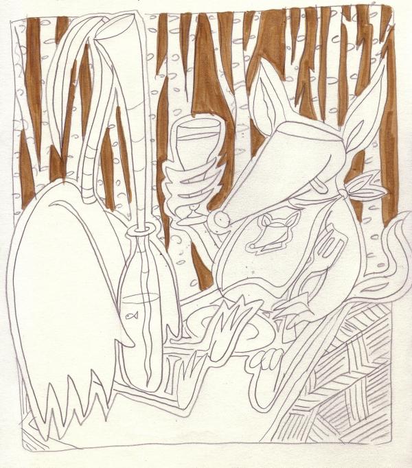 Étude à la mine de plomb sur papier, pour "Le Renard et la Cigogne"
