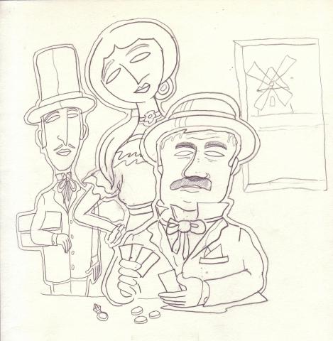 Etude à la mine de plomb sur papier, pour " La partie de cartes 1"