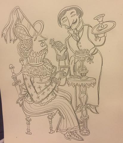 Etude à la mine de plomb sur papier, pour "Les cafés de Lutèce"