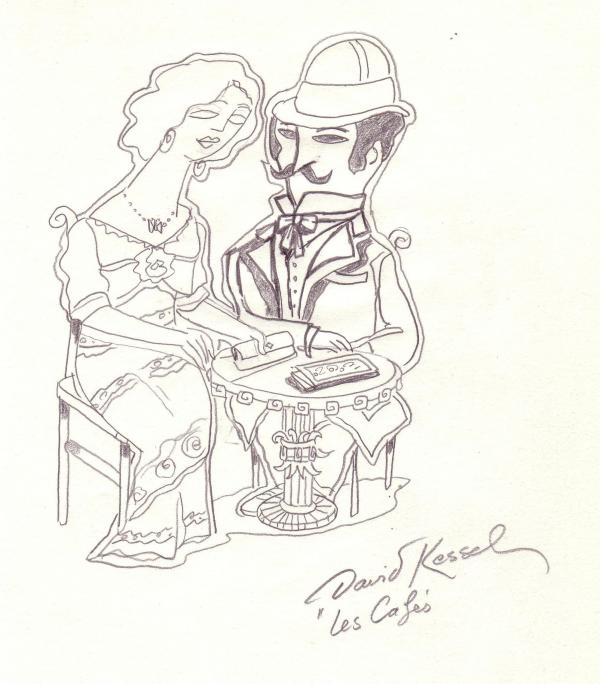 Etude, à la mine de plomb sur papier,pour "Les cafés de Paris, 2"